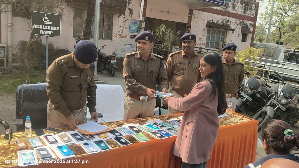 रांची पुलिस ने ऑपरेशन मुस्कान के तहत एक बड़ी सफलता हासिल की है। जगन्नाथपुर थाना क्षेत्र के अलग-अलग इलाकों से गुम हुए करीब 50 मोबाइल फोन पुलिस ने बरामद किए हैं। बरामद मोबाइल फोन को आज थाना परिसर में आयोजित मोबाइल वितरण समारोह के दौरान उनके असली धारकों को सौंपा गया।