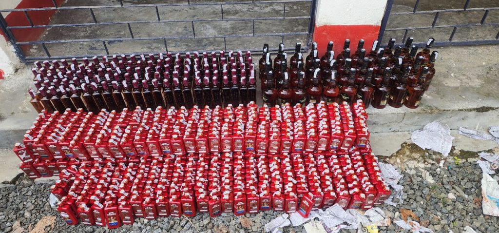 जांच के दौरान एक संदिग्ध स्कोडा कार (संख्या JH05AP 6363) को रोका गया। वाहन की तलाशी लेने पर विभिन्न ब्रांड की कुल 809 बोतल अवैध अंग्रेजी शराब बरामद की गई।