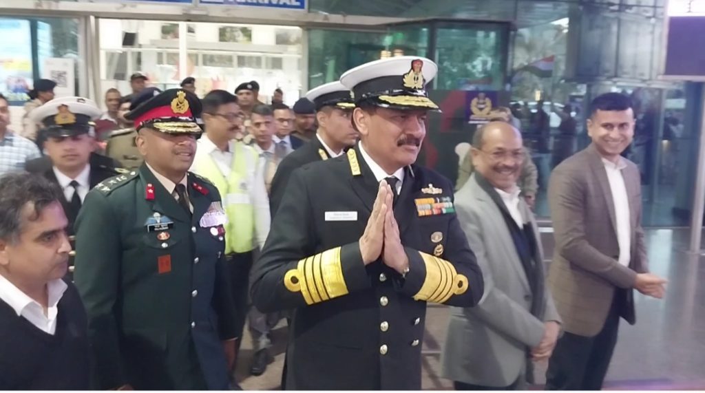 भारतीय नौसेना के प्रमुख एडमिरल दिनेश कुमार त्रिपाठी दो दिवसीय दौरे पर झारखंड की राजधानी रांची पहुंचे। बिरसा मुंडा एयरपोर्ट पर उनके आगमन पर सेना एवं नौसेना के वरिष्ठ अधिकारियों और जवानों द्वारा भव्य एवं गरिमामय स्वागत किया गया। इस अवसर पर झारखंड के सांस्कृतिक कलाकारों ने पारंपरिक नृत्य और कला प्रस्तुतियों के माध्यम से उनका अभिनंदन किया, जिससे स्वागत समारोह विशेष रूप से आकर्षक बन गया।