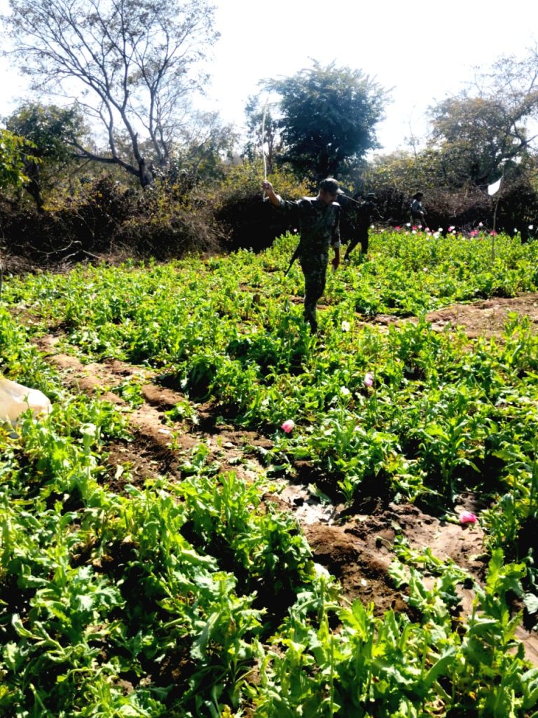 पलामू जिले में विशेष अभियान के तहत नौडीहा बाजार थाना क्षेत्र के कऊवल के जंगली इलाके में वन भूमि पर करीब डेढ़ एकड़ में लगी अवैध अफीम की खेती को पुलिस ने ट्रैक्टर की मदद से विनष्ट किया। इस अभियान में नौडीहा बाजार थाना और कुहकूह कला पुलिस पिकेट की संयुक्त टीम शामिल रही।