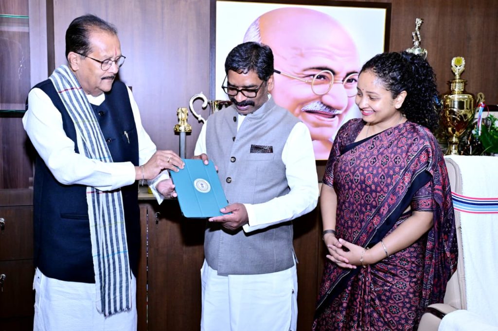 रांची: झारखंड विधानसभा में बजट सत्र के दौरान वित्त मंत्री राधाकृष्ण किशोर ने मुख्यमंत्री श्री हेमन्त सोरेन को वित्तीय वर्ष 2026-27 के बजट की प्रति सौंप दी। बजट पेश किए जाने से पहले हुई इस औपचारिक प्रक्रिया को सरकार की महत्वपूर्ण प्रशासनिक तैयारी के रूप में देखा जा रहा है।