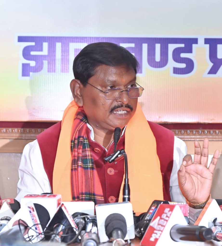 बीजेपी नेता अर्जुन मुंडा ने की प्रेस कॉन्फ्रेंस, पेसा नियमावली को लेकर सरकार पर उठाए सवाल