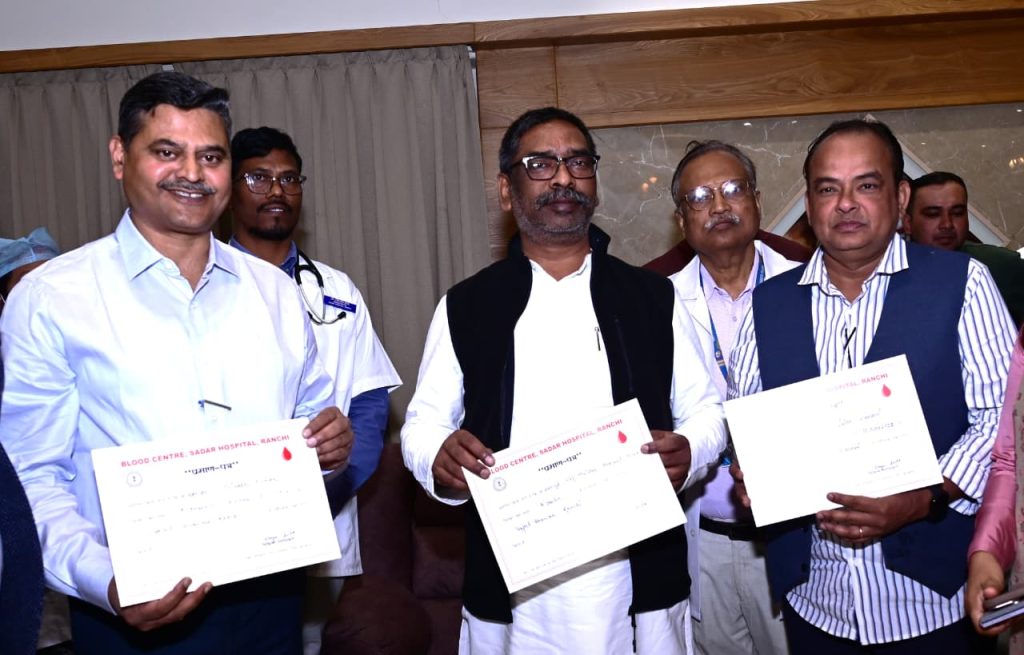 मुख्यमंत्री हेमन्त सोरेन ने किया ‘स्वैच्छिक रक्तदान महाअभियान’ का शुभारंभ झारखंड की 25वीं वर्षगांठ पर 12 से 28 नवंबर तक राज्यभर में चलेगा जीवनदायिनी अभियान
