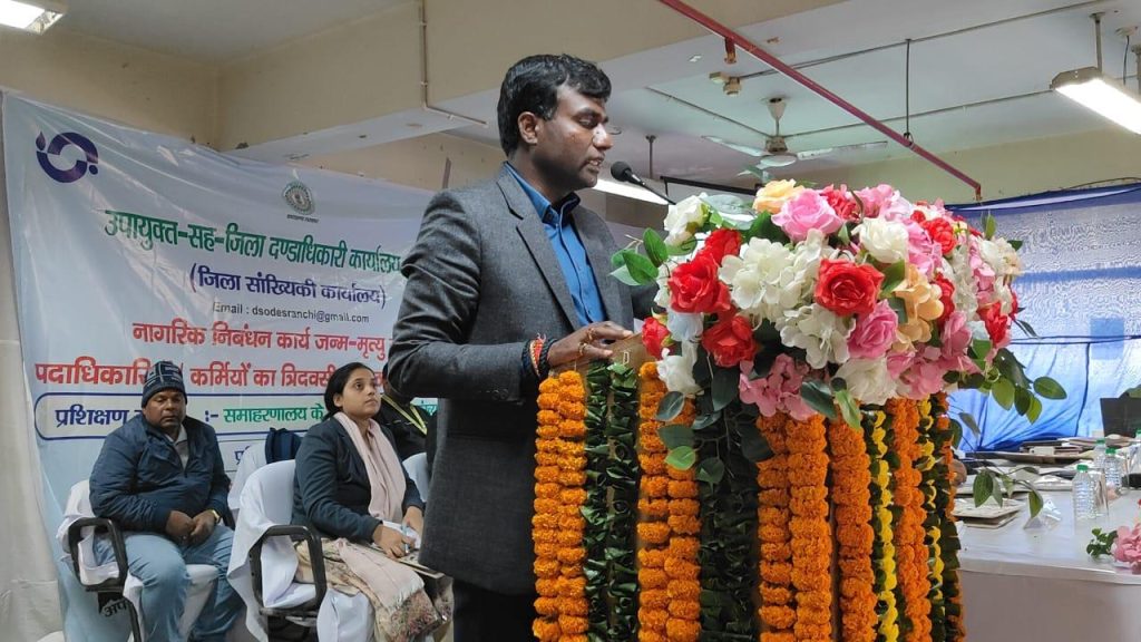 रांची समाहरणालय के ब्लॉक–‘बी’ स्थित कक्ष संख्या–505 में नागरिक निबंधन कार्य (जन्म–मृत्यु) से जुड़े पदाधिकारियों का जिला स्तरीय प्रशिक्षण कार्यक्रम आयोजित किया गया।