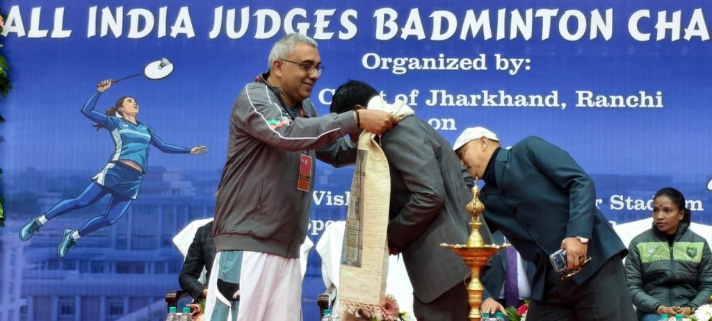 माननीय झारखंड उच्च न्यायालय के तत्वावधान में आयोजित 2nd All India Judges Badminton Tournament–2026 का आज विधिवत शुभारंभ किया गया। उद्घाटन समारोह में मुख्य अतिथि माननीय मुख्य न्यायाधीश, झारखंड उच्च न्यायालय न्यायमूर्ति श्री तरलोक सिंह चौहान, न्यायमूर्ति श्री रोंगोन मुखोपाध्याय, न्यायमूर्ति श्रीमती अनुभा रावत चौधरी एवं भारतीय महिला हॉकी टीम की कप्तान सुश्री निक्की प्रधान ने दीप प्रज्ज्वलित कर प्रतियोगिता का शुभारंभ किया।