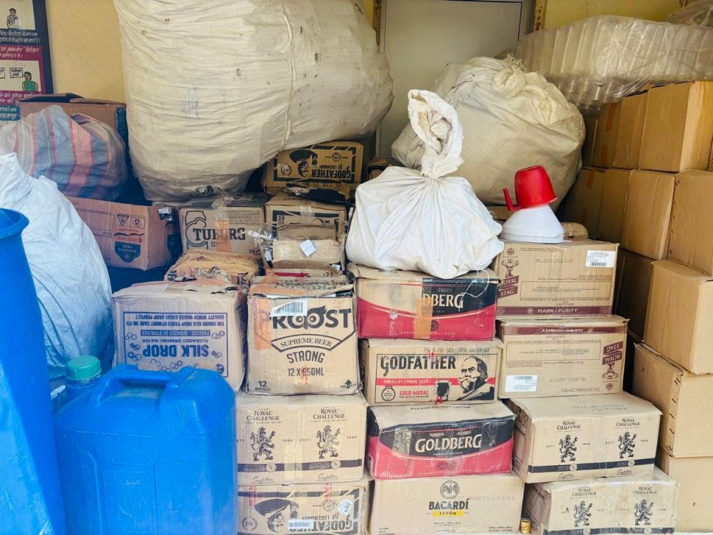 विभिन्न ब्रांड जैसे Mc Dowel, Royal Stag, Iconic White, King Gold, Royal Challenger के कुल 2019 लीटर शराब, ढेरों खाली बोतलें, कैप, स्टीकर और शराब निर्माण में उपयोग किए जाने वाले उपकरण बरामद किए गए हैं।