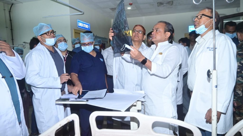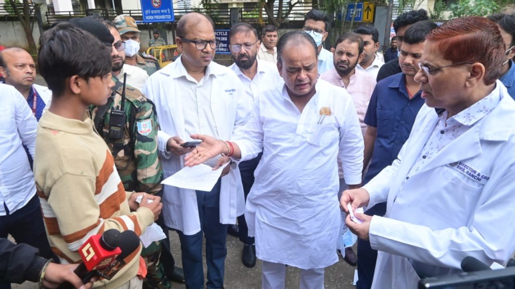 हादसे के बाद मंत्री डॉ. अंसारी रिम्स (RIMS) पहुंचे, जहां उन्होंने ब्लड बैंक, वार्ड और आपात सेवा इकाई का औचक निरीक्षण किया।