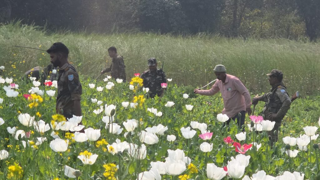 हजारीबाग में पुलिस की बड़ी कार्रवाई, चौपारण में 10 एकड़ अवैध अफीम की खेती नष्ट