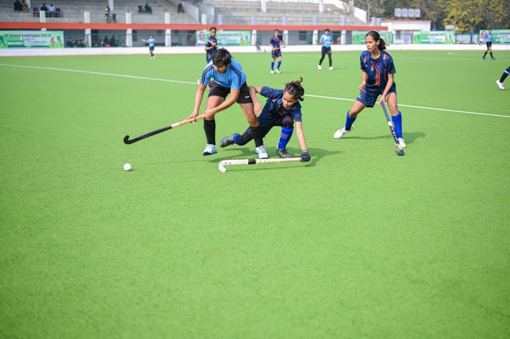रांची : स्कूली शिक्षा एवं साक्षरता विभाग, झारखंड सरकार के अंतर्गत झारखंड शिक्षा परियोजना परिषद, रांची की मेजबानी में 27 से 31 जनवरी तक आयोजित 69वीं राष्ट्रीय स्कूली हॉकी प्रतियोगिता (अंडर-17 बालक एवं बालिका वर्ग) के तीसरे दिन लीग मुकाबले बेहद रोमांचक रहे। विभिन्न राज्यों की टीमों ने दमदार प्रदर्शन करते हुए प्री-क्वार्टर फाइनल में प्रवेश किया, जिससे प्रतियोगिता का रोमांच और बढ़ गया है।