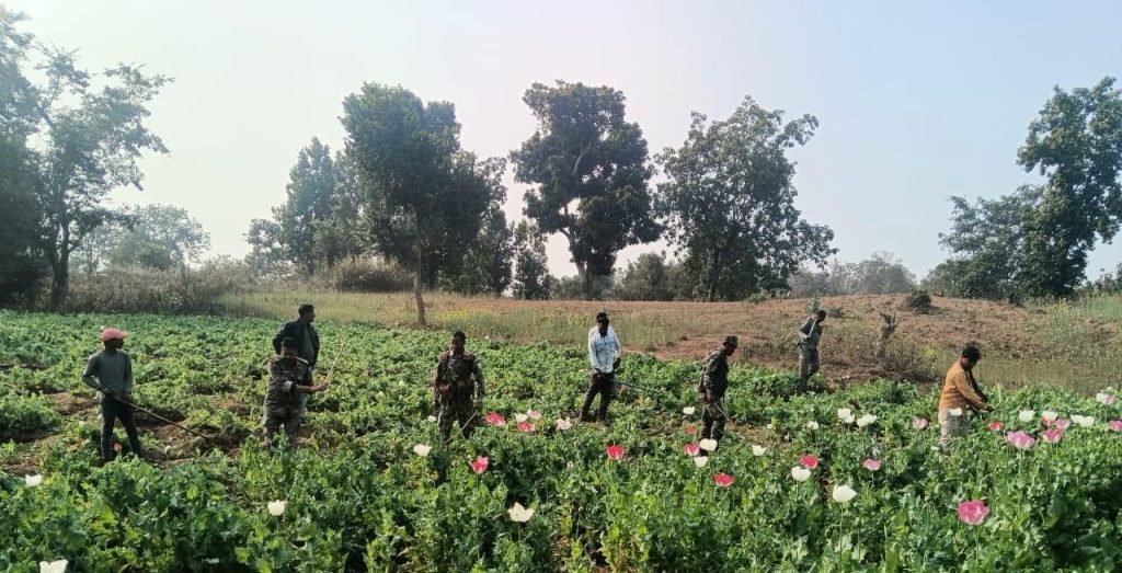 वन भूमि पर अवैध अफीम की खेती नष्ट, 03 एकड़ में लगी फसल विनष्ट